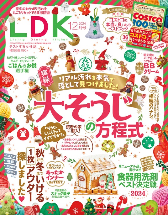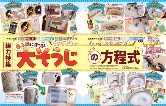 12月号は「大そうじの方程式」を総力特集! 日々のお掃除だけでは、とても落としきれない汚れを見て見ぬふりしていませんか? 編集部が読者宅にお邪魔して、リアルな汚れを本気で落として、学んだ方程式を伝授しちゃいます。また、秋から冬まで1枚でいけるアウターや食器用洗剤、ごはんのお供のおすすめなど、生活が楽しくなる情報を集めました!