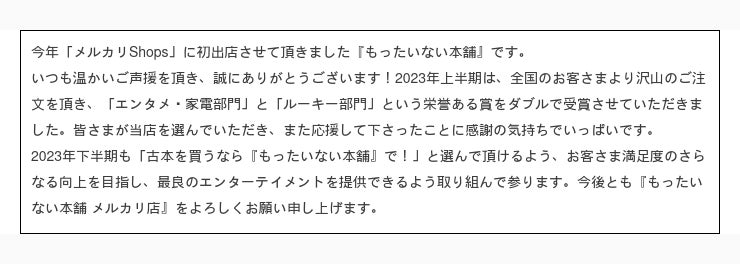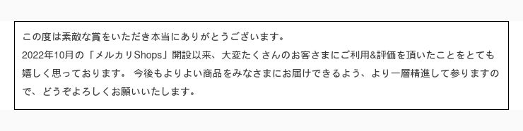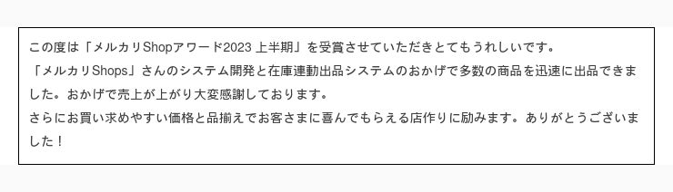 「メルカリShopsアワード 2023 上半期」選考委員会によって選定いたしました。