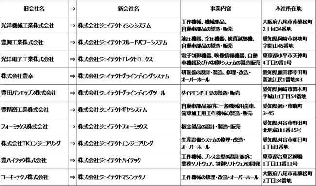株式会社ジェイテクト(本社:愛知県刈谷市、社長:佐藤和弘、以下「ジェイテクト」)のグループ会社10社は、2022年10月1日に「ジェイテクト」を冠した社名に変更いたします。