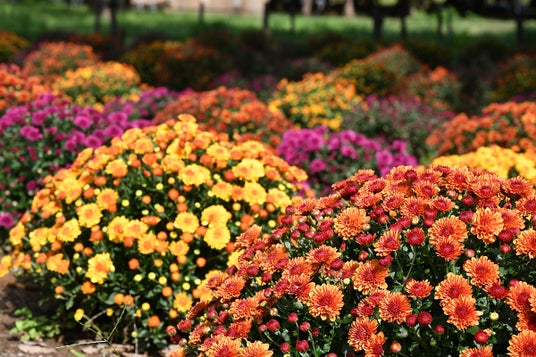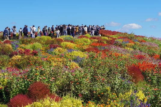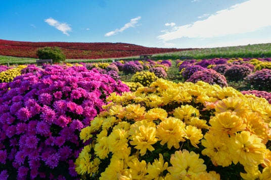 今年初登場のマルチフローラマムは、キク科キク属の多年草で、黄色、ピンク、紫など多数の小花が密集して咲きます。大きさは30cm~60cmほどで、日照時間の変化に反応して花を咲かせることが特徴とされています。みはらしの丘を背景に、彩を添えるマムの見頃は、10月31日頃までの予想です。