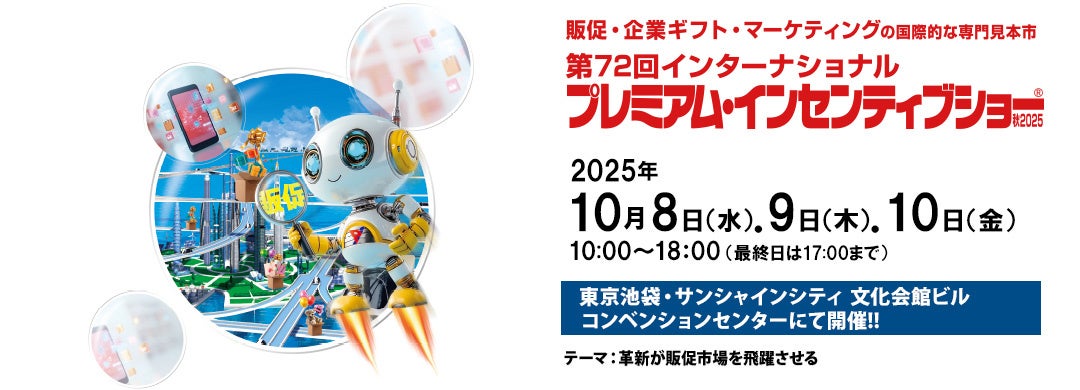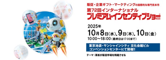 株式会社ビジネスガイド社(本社=東京都台東区、代表取締役社長:芳賀信享)は10月8日~10日、販促・企業ギフト・マーケティングの専門見本市「第72回インターナショナル プレミアム・インセンティブショー秋2025」(PIショー)を、サンシャインシティ文化会館ビルで開催します。