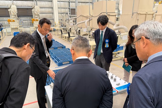 竣工式当日は、事業者や銀行関係者、地元関係者など約100人にご参加いただき、金型製作、鋳造、加工といった各工程の現場をご見学いただきました。