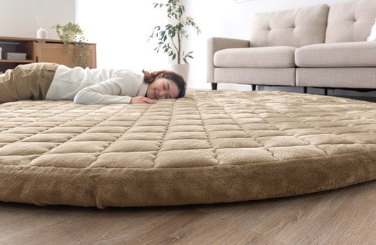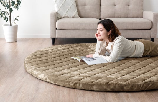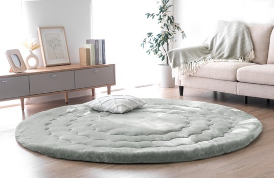 マンション住まいやお子様がいるご家庭に人気の『極厚ラグ』に円形デザインが登場! 階下への防音やケガ防止の機能に加え、分厚く丸いデザインが穏やかな見た目も両立