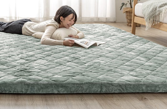 今回登場した2種類の円形極厚ラグは滑り止めを施しており、ラグに座ってソファに寄りかかった場合やお子様が走り回った場合にもズレを防ぐことができます。さらに、低ホルムアルデヒドで肌が敏感な方やお子様がいるご家庭でも安心してご使用いただけます。