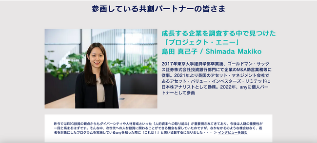 OVER20&Company. が大学生から29歳までの成長環境を内省を中心に整備したプロジェクト・エニーは、企業だけではなく個人もスポンサーとして参画することができます。
