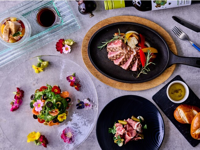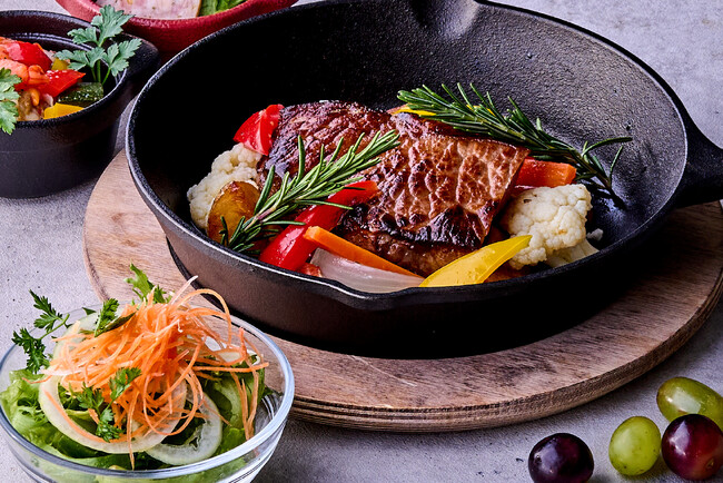 「Captain’s Grill and Bar」(キャプテンズグリル アンド バー)では、ランチに国産牛を使用したセットメニューをご用意するほか、ディナーには、ステーキや倖せを呼ぶ川崎名物「住吉」のくずもちミニパフェを含んだ特別コースをご提供いたします。