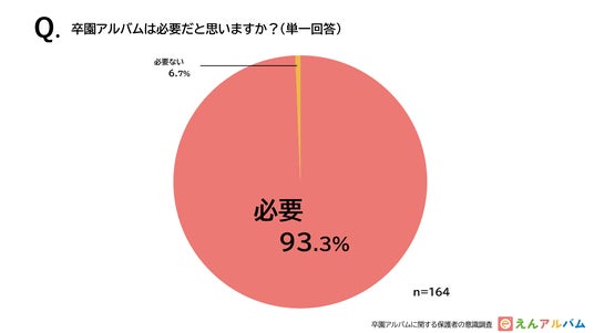 【結果7】卒園アルバムは必要かどうか聞いたところ、9割以上の人が「必要」(93.3%)と回答しました。