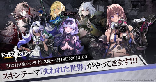 株式会社サンボーンジャパンは、スマホ向け戦略型シミュレーションゲーム『ドールズフロントライン(以下、「ドルフロ」)』において、異形を纏ったようなダークな新スキンテーマ『失われた世界』が3月21日(金)メンテナンス後より追加されることをお知らせいたします。