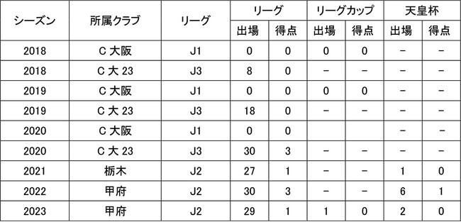 所属歴/喜連東FC - セレッソ大阪U-15 - セレッソ大阪U-18 - 栃木SC - ヴァンフォーレ甲府