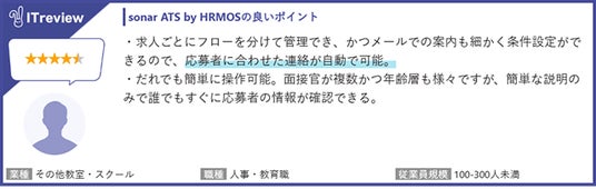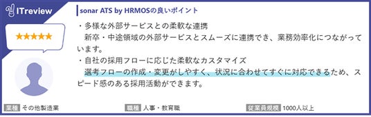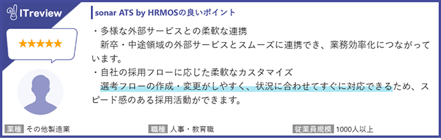 「sonar ATS by HRMOS」のレビュー紹介(抜粋)