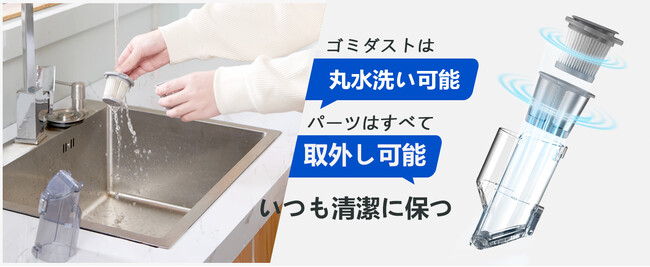 3. 簡単なメンテナンス: Proscenic P6吸尘器は、5重濾過システムを採用しており、花粉や微小な粒子をしっかりと捕捉し、クリーンな空気を排出します。また、フィルター、ダストカップ、ブラシなどの部品は取り外して水洗い可能で、メンテナンスがラクチンです。
