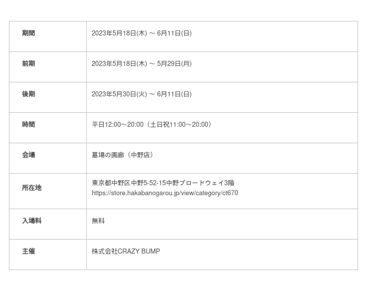 マンガ、アニメ、特撮などを始めとするサブカルチャーをテーマとした企画展を開催・運営している株式会社クレイジーバンプは2023年5月18日(木) ~ 6月11日(日)の期間で墓場の画廊中野店とONLINE STOREにて開催する【アニメ『ULTRAMAN』FINALシーズン配信記念 POP UP STORE feat.TARO in墓場の画廊】の商品情報第三弾を公開致します。