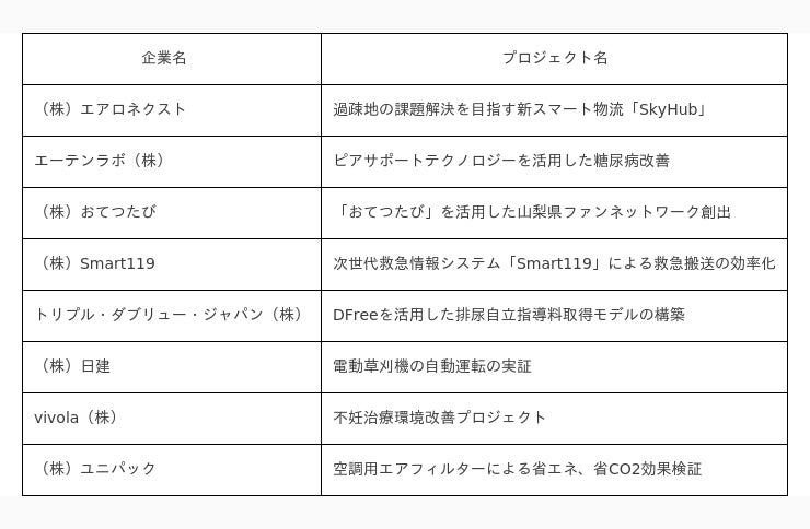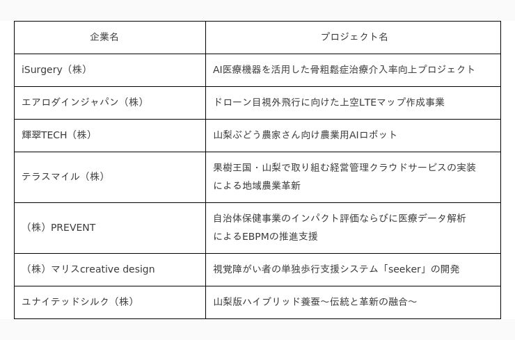 本事業第7期の実施にあたり、「テストベッド(※)の聖地やまなし」として、全国のスタートアップ企業等からの実証実験プロジェクトを募集いたします。