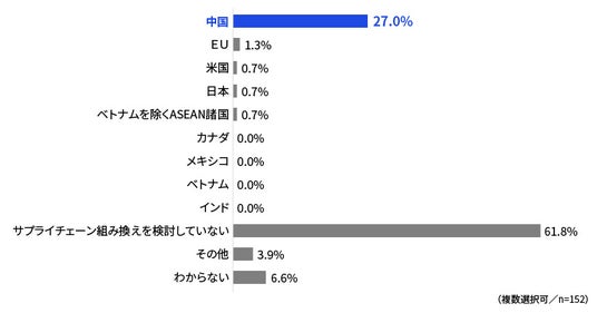 ●27.0%の企業が中国へのサプライチェーン依存度低下を検討
