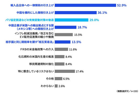2.一律関税を含む「関税引き上げ」、次いで「気候変動対策の後退」を懸念
