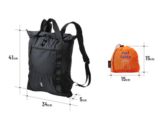 ・ポケサック:約220gで「背負っているのを忘れる」ほどの軽量リュック(約14L)。