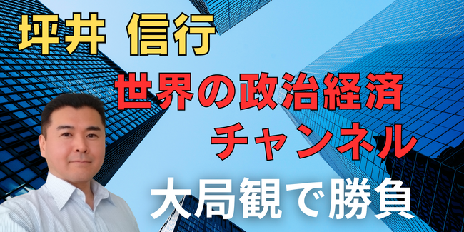 本チャンネルでは、長年金融・資本市場で活動してきた坪井信行が、証券アナリストなどの実務を通じて培った経験とスキルを活用し、正しい大局観に基づく政治経済の分析を行いつつ、政治経済や金融に関する専門知識が全くなくても容易に理解できるような、分かりやすい解説をお届けします。
