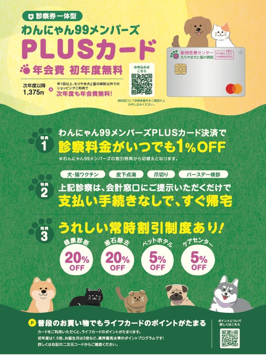 ライフカード株式会社(本社:神奈川県横浜市/代表取締役:増井 啓司)は、株式会社テリア(本社:愛知県名古屋市/代表取締役:淺井 亮太)との提携カード、「わんにゃん99メンバーズPLUSカード」の募集を開始します。