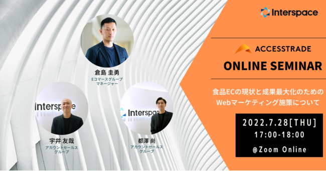 インターネット広告事業を展開する株式会社インタースペース(所在地:東京都新宿区、代表取締役社長:河端伸一郎、証券コード:2122、以下インタースペース)の運営するアフィリエイトサービス『アクセストレード』は、食品・飲料事業者様向けに、食品EC市場の動向と、マーケティング施策についての無料オンラインセミナーを2022年7月28日(木)に開催いたします。