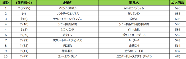 SMN株式会社(本社:東京都品川区、代表取締役社長:井宮 大輔、以下SMN)のグループ会社である株式会社ゼータ・ブリッジ(本社:東京都品川区、代表取締役:安藤 尚隆)は、2022年6月度の全国地上波25局、BS放送6局にて放送されたテレビCMの放送回数を調査し集計しましたので、お知らせいたします。