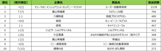 2022年6月度の商品別ランキングは、1位リクルートホールディングス「じゃらん」、2位サントリーウエルネス「セサミンEX」、3位チューリッヒ・インシュアランス・カンパニー・リミテッド「スーパー自動車保険」となりました。