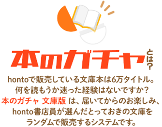 honto本の通販ストアで販売している文庫本約6万タイトルの中から、書店員が選んだとっておきの文庫をランダムでお届けする企画商品。