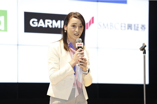 冒頭に行われた関係者挨拶では、まず、風間明日本陸連専務理事が登壇して「ダイヤモンドアスリートは、中長期的に選手を育て、競技成績だけでなく、未来の日本の社会に役立つ人材を育てていくためのもので、皆さんは、まさにその主役。ワールドワイドな活躍を期待している」と激励。