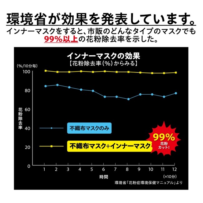 インナーマスクを使用することで花粉を99%カット!