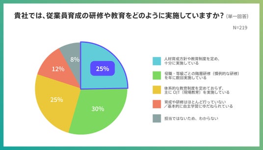 - 「教育制度を定めて十分に実施している」と回答したのは、4分の1(25%)にとどまる