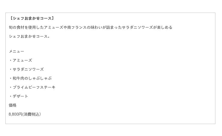 【シェフおまかせコース】をご用意いたしました。