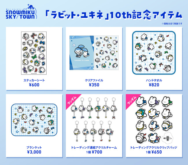 10周年を記念して2023年11月11日(土)に「雪ミク スカイタウン」(北海道・新千歳空港国内線ターミナルビル4F)で発売開始となる新商品は、ユキネ登場以降に開催された「SNOW MIKU」の歴代衣装に身を包んだイラストを使用しております。イベント衣装ではない青いマフラーを巻いた姿を含め、全部で11種類の愛くるしいユキネをイラストレーター・たかくらさんに描き下ろしていただきました。これからの寒い季節にピッタリなブランケットをはじめとした6種のアイテムをご用意しております。記念アイテムは「雪ミク スカイタウン」オンラインストア(https://ec.snowmiku.com/)でもお買い求めいただけますので、遠方の方でも入手可能です。