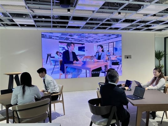 完成したムービーは、大阪本社内の大型スクリーンで常時投影され、社員が日常的に目にするコンテンツとして運用しています。