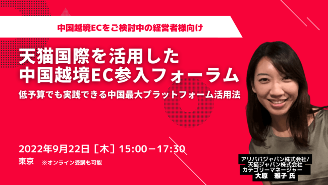 物流・ロジスティクスコンサルティングサービスを提供する船井総研ロジ株式会社(東京都千代田区(東京本社)、代表:菅重宏、以下「船井総研ロジ」)は、中国市場への参入を検討している企業を対象に「天猫国際を活用した中国越境EC参入フォーラム」を2022年9月22日(木)に開催いたします。