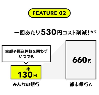 みんなの銀行 法人口座は、お客さまの時間とコストの削減、そして安全な取引の実現により事業をサポートします。また、預金についても普通預金金利0.5%*¹と高金利でご利用いただけます。
