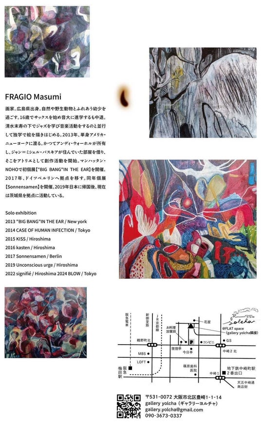 また2020年には出産を経験し、生命の神秘が自身の新たな息吹となっているというFRAGIO。サックスのブロウのように観る者の感性を揺さぶる作品を、ぜひご堪能ください。