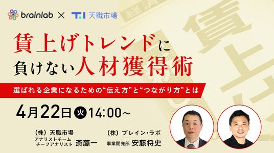 「働く」に関する社会課題をビジネスで解決するキャムコムグループの株式会社天職市場(本社:東京都新宿区、代表取締役:春名敬太 、以下:天職市場)と株式会社ブレイン・ラボ(本社:東京都港区、代表取締役社長:中江典博 、以下:ブレイン・ラボ)は2025年4月22日(火) 14:00よりオンラインセミナー『賃上げトレンドに負けない人材獲得術! 選ばれる企業になるための“伝え方”と“つながり方”とは!?」』を共同開催いたします。