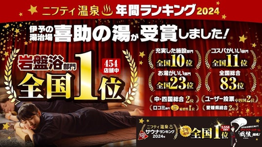 kScは、サウナ環境の改善をはじめ、地元の伝統工芸とのコラボレーションによるサウナプロデュースなど、リラクゼーション空間の質を高める取り組みを推進しています。その成果として、「ニフティ温泉 年間ランキング」(ニフティライフスタイル(株)主催)において、2022年・2023年の2年連続でサウナ人気ランキング日本1位を獲得し、さらに2024年には岩盤浴部門でも全国1位を受賞しました。これは、全国17,998件の温浴施設情報を検索できる業界最大手サイト「ニフティ温泉」において、全国の温泉・サウナファンから高い評価を受けました。