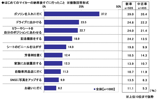 ◆はじめてのマイカーの納車後すぐに行ったこと 10人に1人が「SNSに写真をアップ」