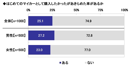 ◆「はじめてのマイカーとして購入したかったがあきらめた車がある」25.1%