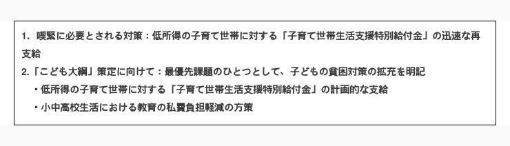 子どもの相対的貧困率は一見改善しているように見えるものの、経済的に困難な状況にある子ども・子育て世帯が直面している困窮がきわめて深刻であることが本調査結果から分かっています。2023年内に策定される予定の「こども大綱」に向けて、セーブ・ザ・チルドレンは、国会議員やこども家庭庁、厚生労働省、文部科学省などに対し、経済的に困難な状況にある子育て世帯への継続的な支援策を迅速に講じるよう訴えていきます。