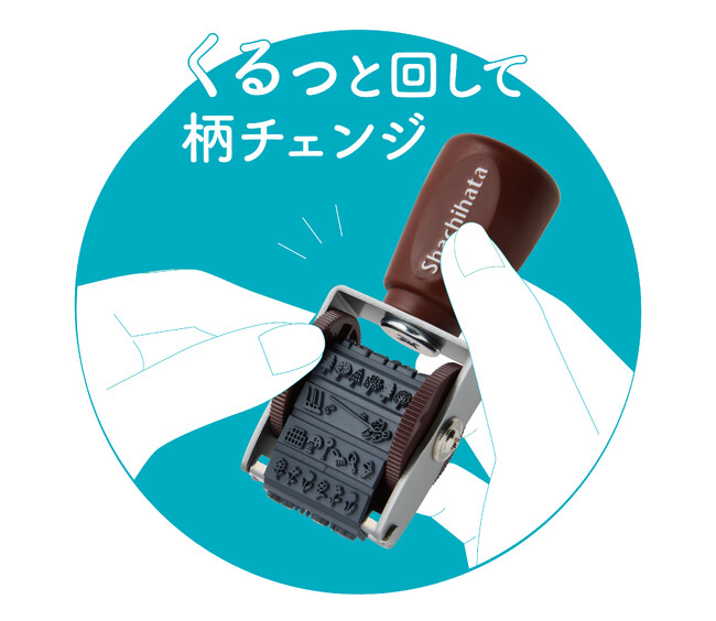 ダイヤルを回転するだけで印面の切り替えができ、このスタンプ1つで10種類の絵柄を楽しむことができます。