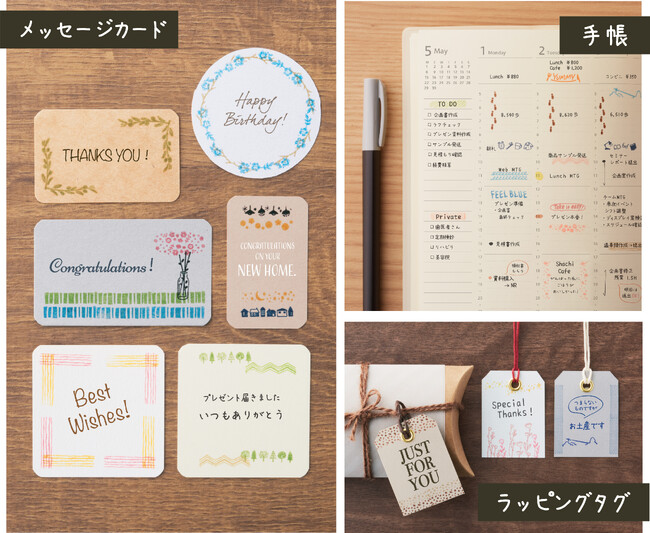 1つで10の柄が楽しめ、手帳やメッセージカードのアレンジにぴったり!