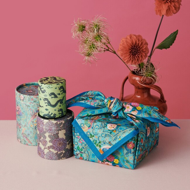 マトリョーシカ缶(ほうじ茶入り) ¥4,950、風呂敷 ¥2,970