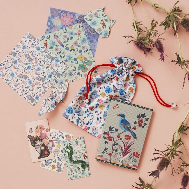 折り紙セット ¥1,100、御朱印帳巾着 ¥2,200、御朱印帳 ¥3,300、ポチ袋(3枚入り) 各¥660