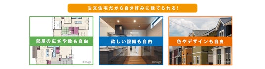 注文住宅なので、建坪や間取り、デザインや性能など自分好みの「オンリーワンの住まい」をつくることができます。また、テレビ番組でも紹介された「999万円の家」などの注文住宅商品や実例に基づく参考プランもご用意していますので、土地の形状や条件、予算に合わせた住まいをご提案いたします。