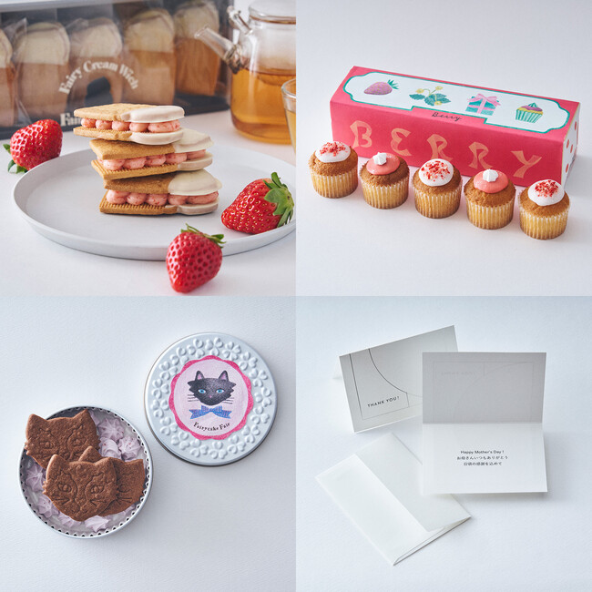 大好きな気持ちを込めてサプライズの贈り物にもぴったりな「【gui flower design × Fairycake Fair】母の日のお花とお菓子」をはじめ、最高級 和紅茶とネコクッキー缶のセットなど、お菓子のセットが登場。大切なお母さんを笑顔にする“見ても食べてもたのしい”母の日ギフトが多数揃います。