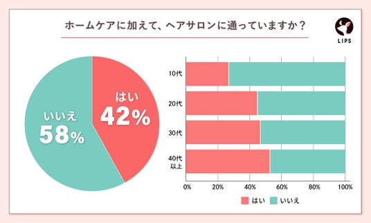 美容関心層が集うLIPSですが、意外にも髪質改善やスペシャルケアのためにヘアサロンに通っている人は全体の約4割にとどまりました。
