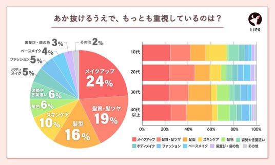 顔の印象を大きく左右する「メイクアップ」はもちろん、「髪」への意識が高いのが印象的。清潔感やあか抜け感を演出するためにヘアケアへ注力する層が増えていることがうかがえます。