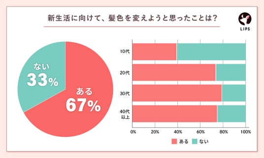 あか抜け欲が高まるこの時期に、美容関心層は髪色を変えたいと感じる人が約7割近くいることが判明。校則などで髪を自由に染められない人もいる10代を除き、20代~40代の7割以上もの人が、髪色を変えようと思った経験があるようです。