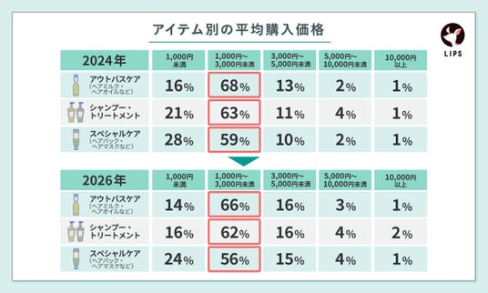 【ヘアケアの平均購入価格】2024年と2026年の比較